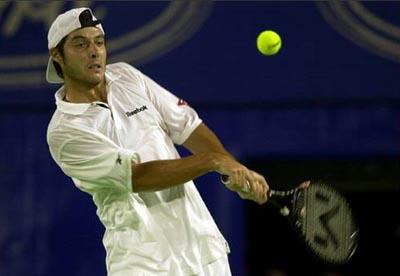 ![]() Arnaud Clement had a shaky start, and had his serve broken early to fall behind in the first set. He was not moving well around the court and was forced to seek medical attention at one point. Grosjean, seen here in action against Clement, easily took the first two sets. Clive Brunskill/ALLSPORT Back Next |